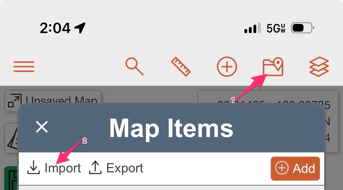 - Tap on the "Map Items" icon on the top right